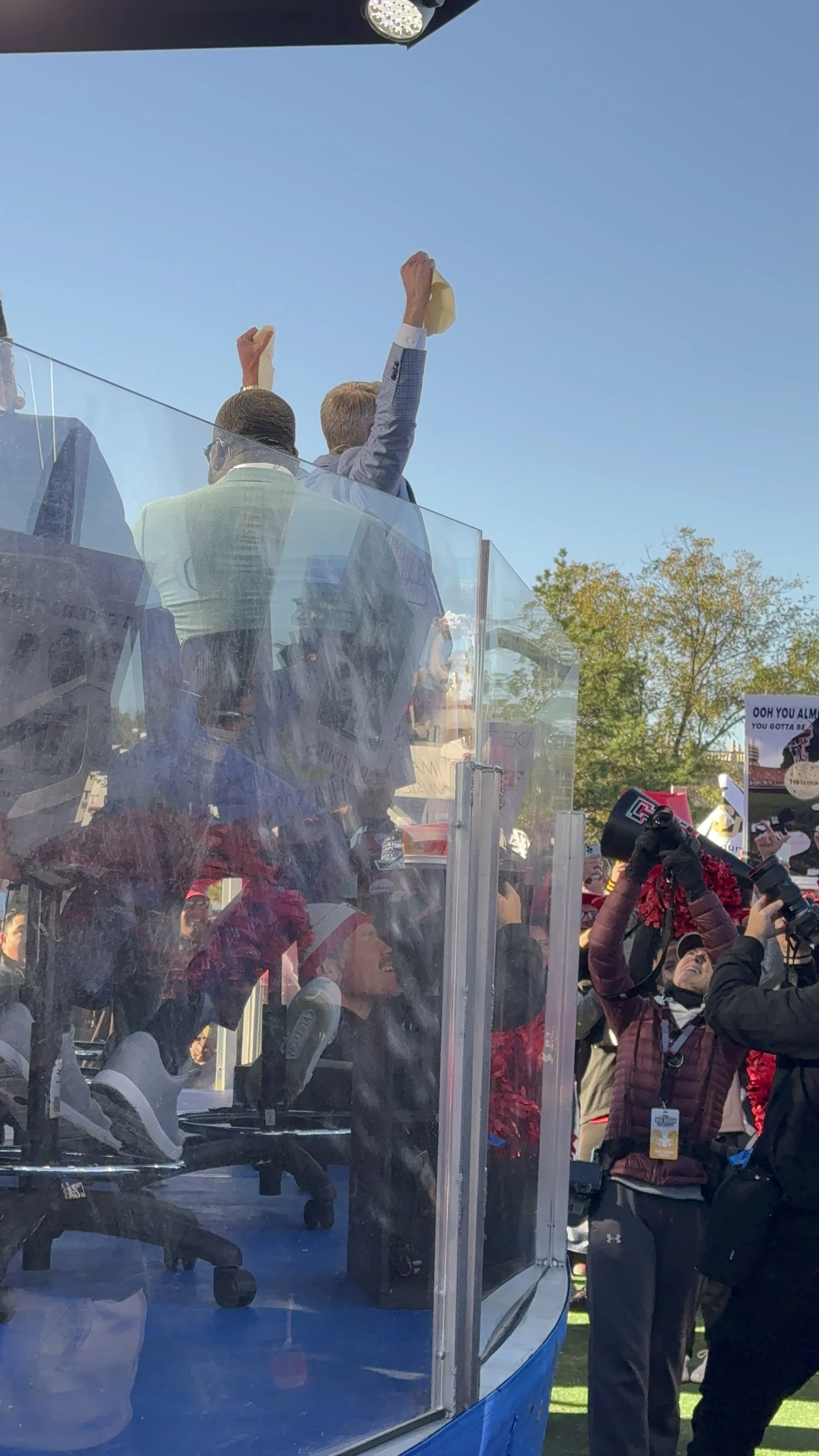 The Fox Sports Big Noon Kickoff Brand Coordinator, Sam Grushow, sought me out to create content for the Texas Tech vs. Colorado game. He conducted background research on who I am and the content I post on social media to determine if I was the right fit before asking me to be their content creator. After on-the-phone meetings discussing what my duties would entail with this role, I got to go to the rehearsals for the show, go behind the stage with my VIP pass, have a photoshoot on the stage, and meet with the panel. The panel consisted of Mark Ingram II, Matt Leinart, Brady Quinn, Rob Stone, and Urban Meyer.